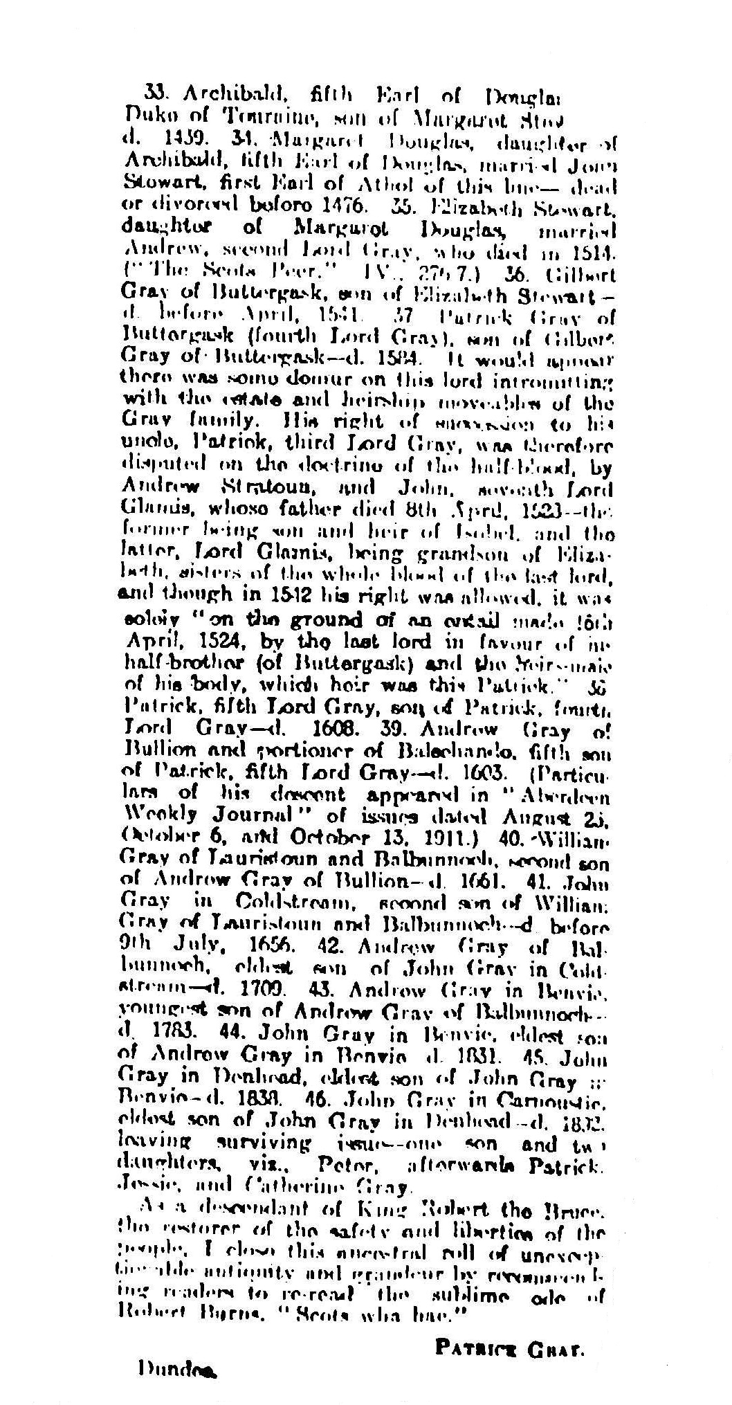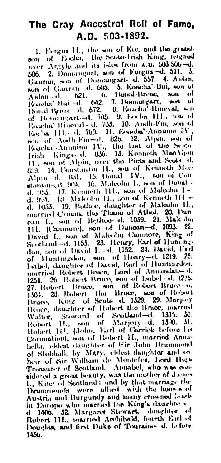 Showing Descent of Gray Family from Fergus the Scoto Irish King
